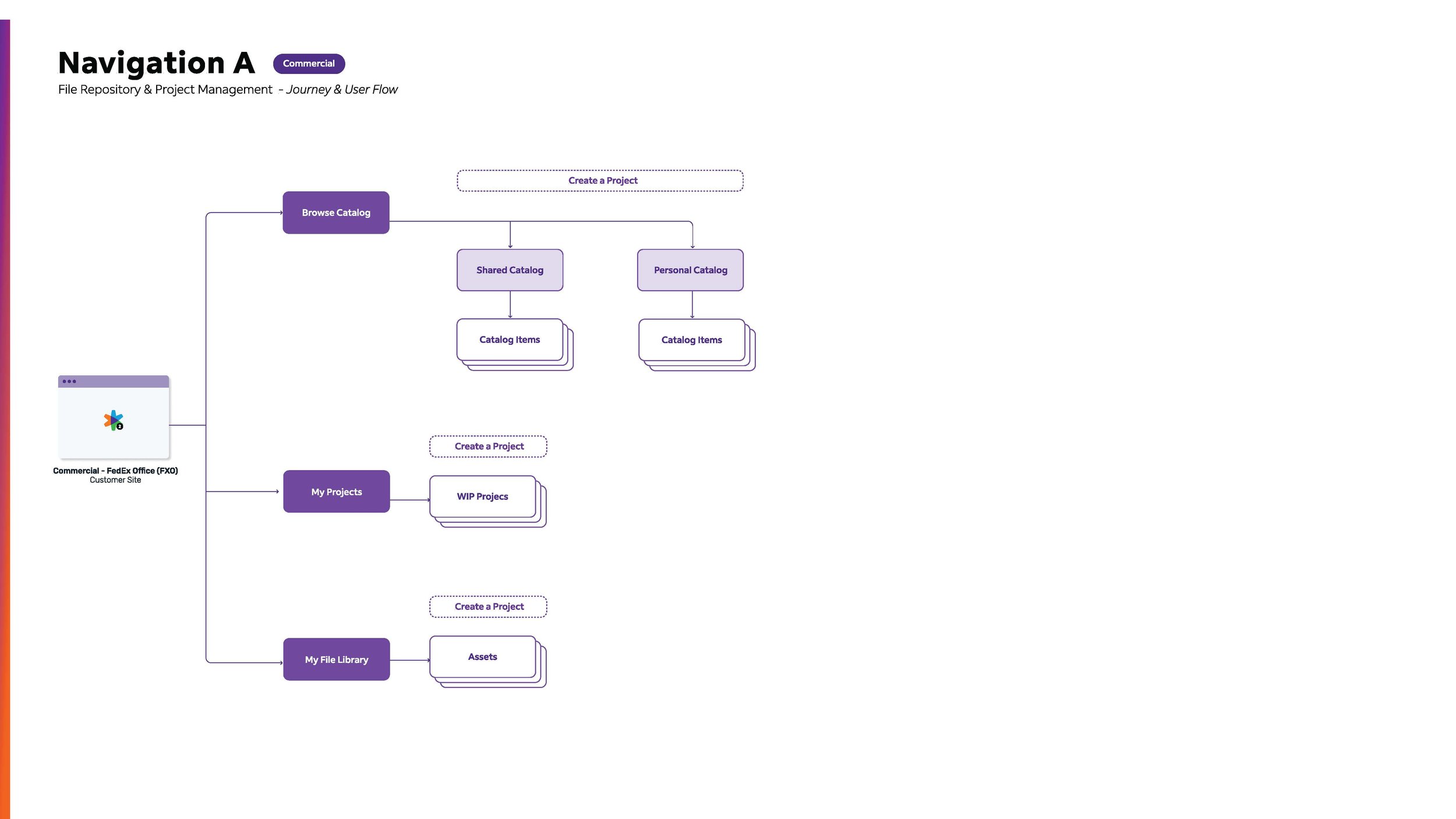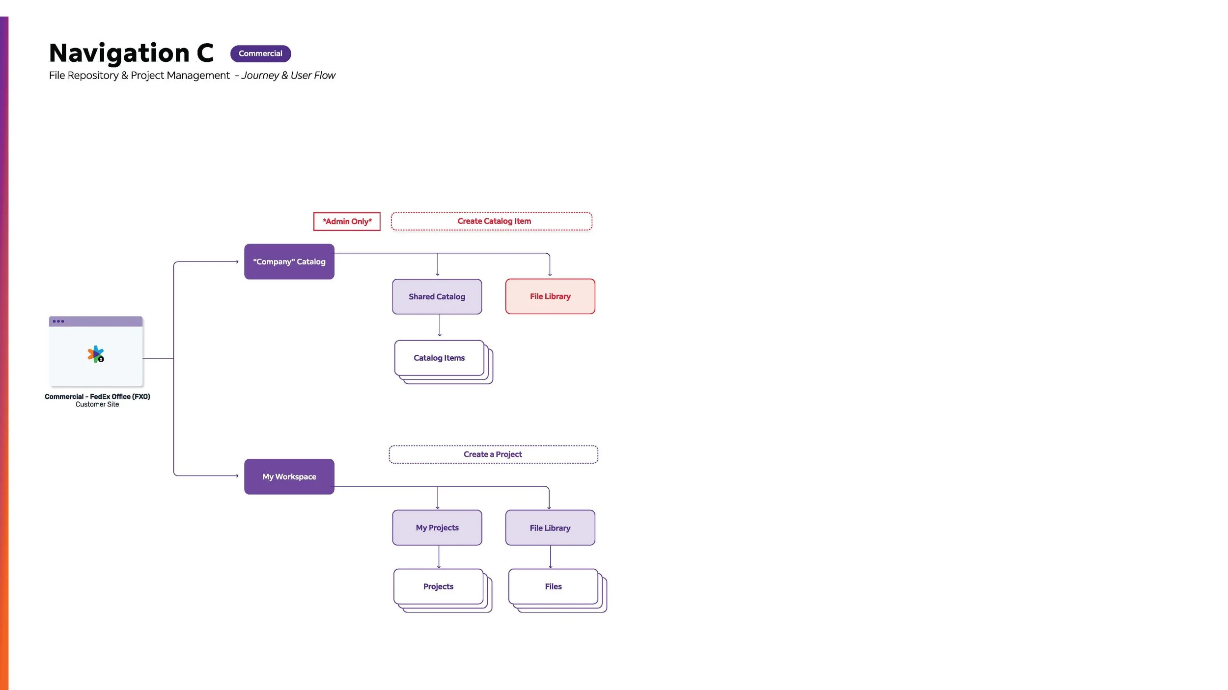 Architecture: Developed complex user flows, schematics, and information architecture for the catalog and file repository.