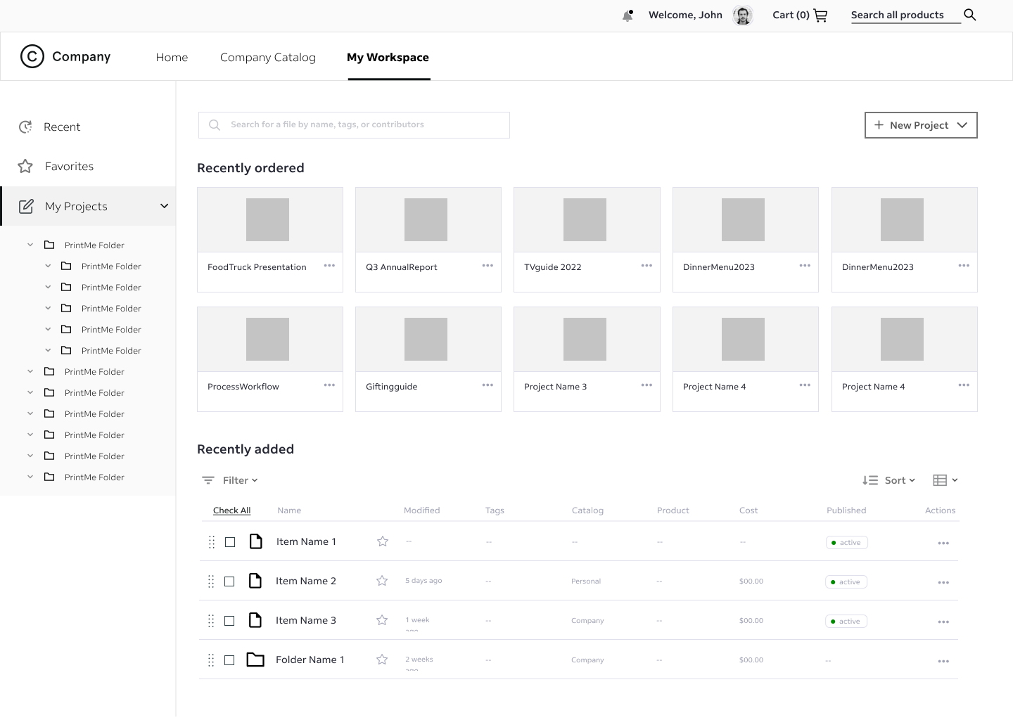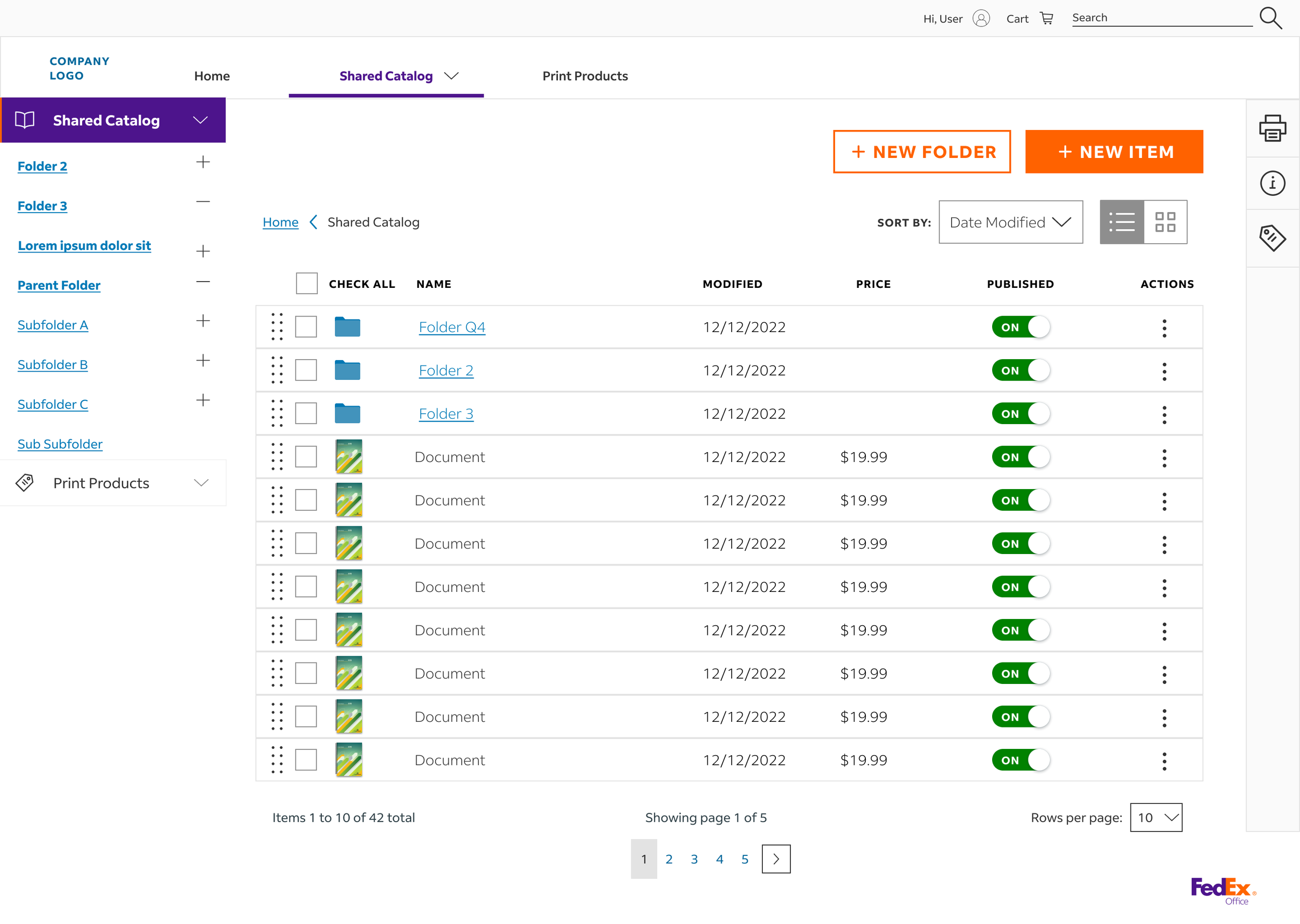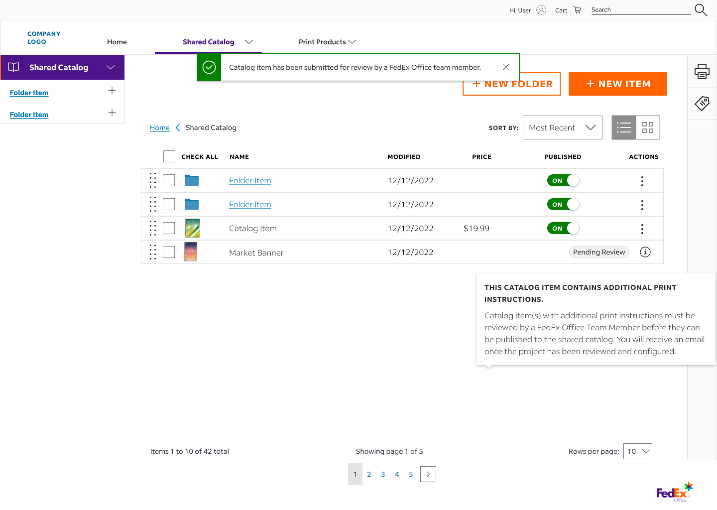 I designed a unified catalog system that allows B2B clients to view company-approved print assets in one place. This reduced the time spent searching for specific product types and ensured brand consistency for the client.