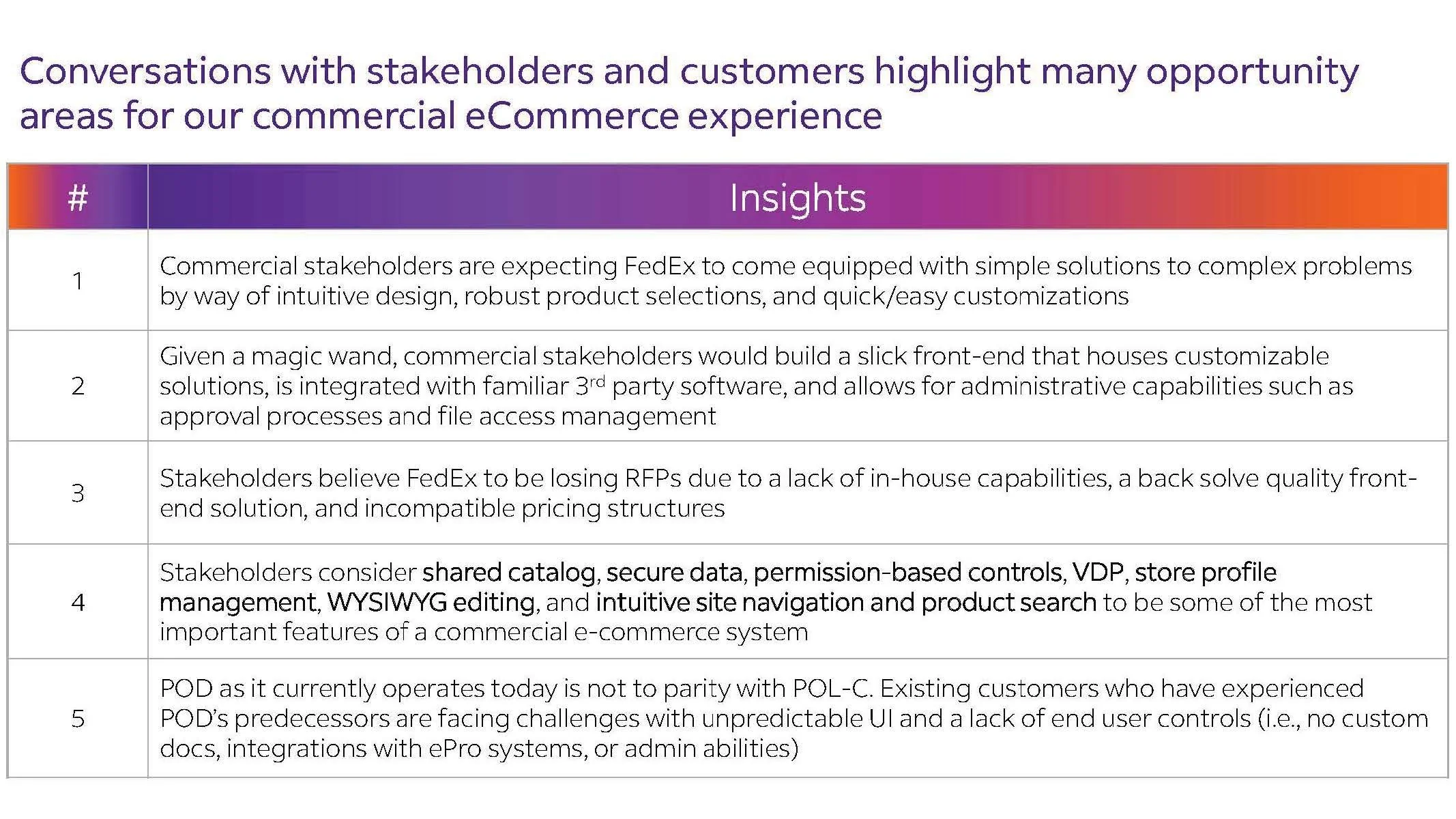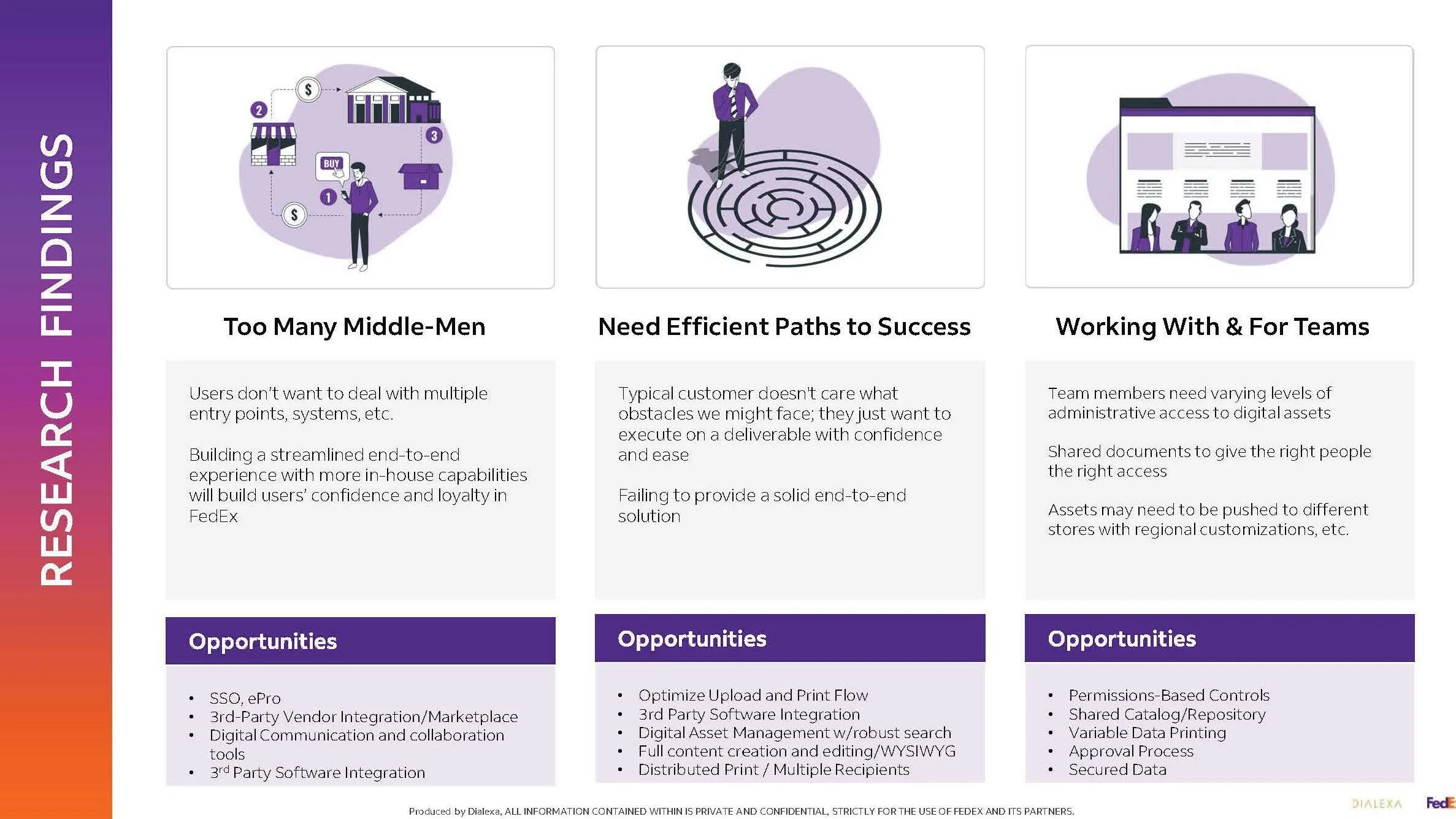 Research findings for solutioning for the future state of the design.