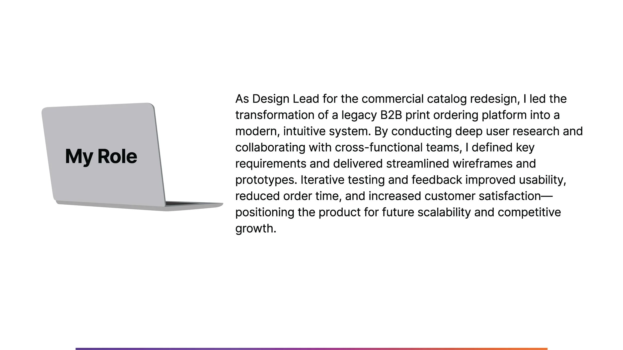 As the Design Lead, I spearheaded the transformation of a legacy commercial catalog system into a modern, efficient ordering platform for B2B customers. The goal was to migrate users from a high-friction, outdated environment to a streamlined system that simplified complex print ordering and project management.